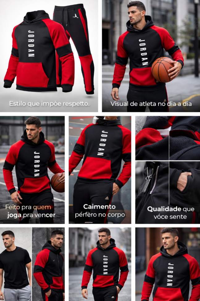 Inspirado no lifestyle do basquete, esse conjunto entrega presença, conforto e atitude em qualquer ocasião.